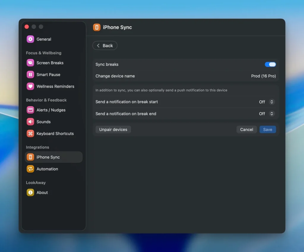 Una delle novità più interessanti riguarda l’integrazione con l’ecosistema Apple. L’app introduce ora la sincronizzazione con l’iPhone, una funzione rara in questa categoria di software. Durante le pause programmate sul Mac, l’app può bloccare l’accesso alle app e ai siti web che tendono a distrarre di più anche sullo smartphone. Questo impedisce all’utente di saltare semplicemente dalla pausa sul computer allo scroll infinito sul telefono, rendendo il riposo effettivo e non solo formale.