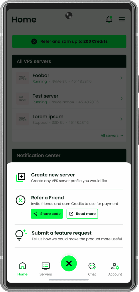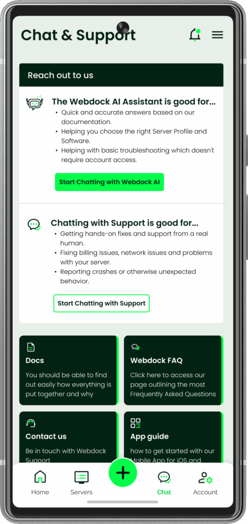 C’è anche il supporto via chat integrato. Niente più giri tra app e browser: apri la chat, parli con il supporto e, si spera, risolvi il problema. Altra cosa pratica: adesso puoi creare nuovi server direttamente dall’app. Progetti improvvisi o necessità di scalare? Fai tutto dallo smartphone senza dover accendere il computer o farlo dalla PWA dello smartphone che non era proprio comodissima.