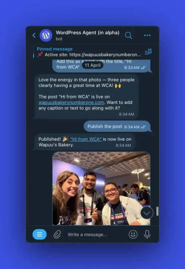 Automattic ha lanciato un nuovo assistente per Telegram dedicato agli utenti di WordPress.com, permettendo di gestire i propri siti direttamente dall’app di messaggistica. La novità arriva in versione alpha e consente di pubblicare post, consultare statistiche, verificare i domini e correggere refusi senza aprire il browser. È una mossa interessante per chi cerca velocità, anche se è importante precisare che queste funzionalità riguardano esclusivamente la piattaforma ospitata WordPress.com e non il software open source WordPress.org.